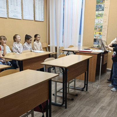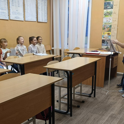 Провели урок хора с первоклассниками, на котором каждый ребёнок смог почувствовать себя дирижёром, прикоснувшись к хоровому искусству.
